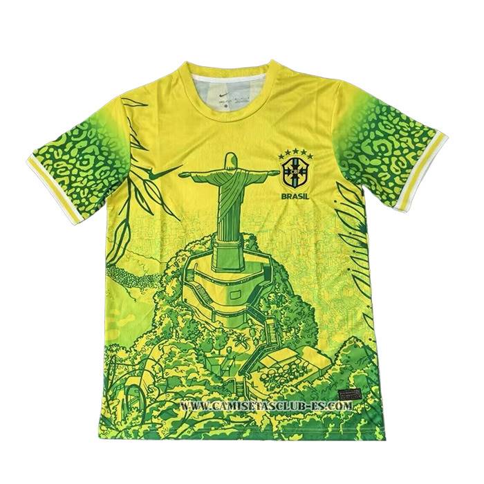 • Tailandia Camiseta Brasil Jesus 25-26 Amarillo Verde